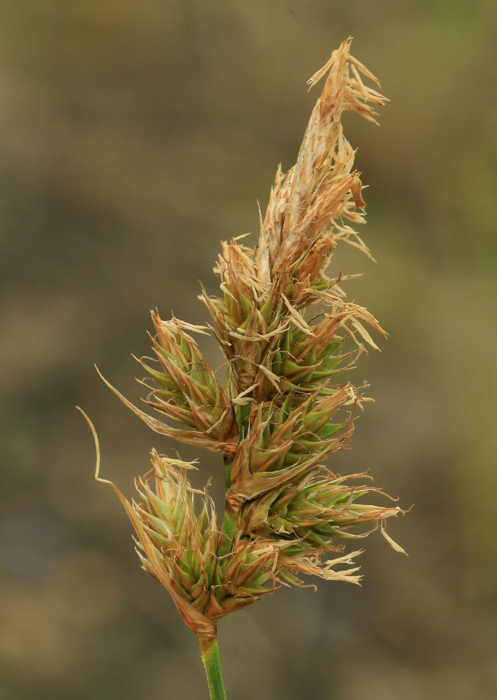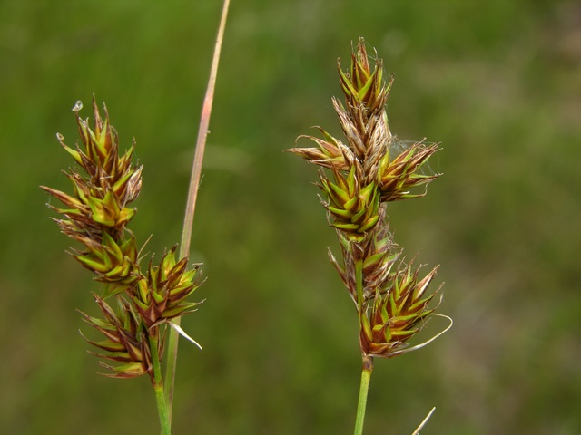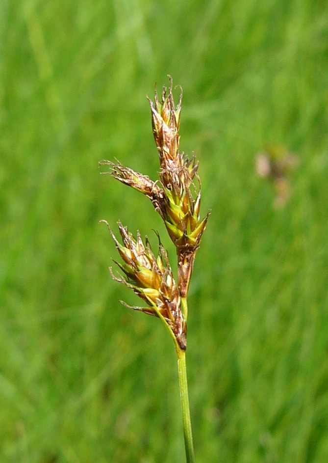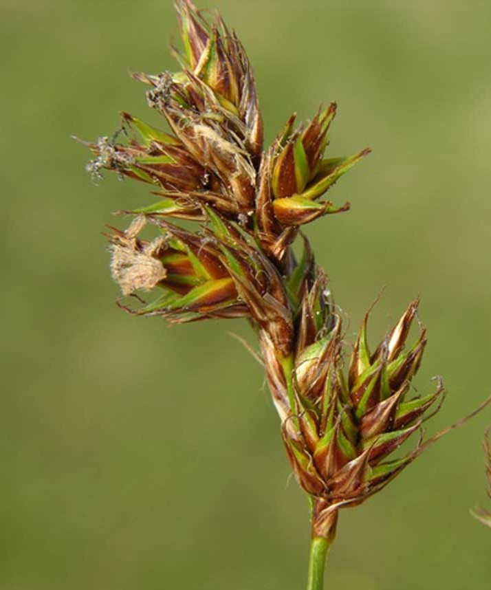 Schläuche flach, außen gewölbt, lang geschnäbelt, Schnabel deutlich 2- zähnig, kaum geflügelt, 2 Narben, so lang wie die Spelzen, Spelzen braun mit grünem Mittelstreif, zugespitzt