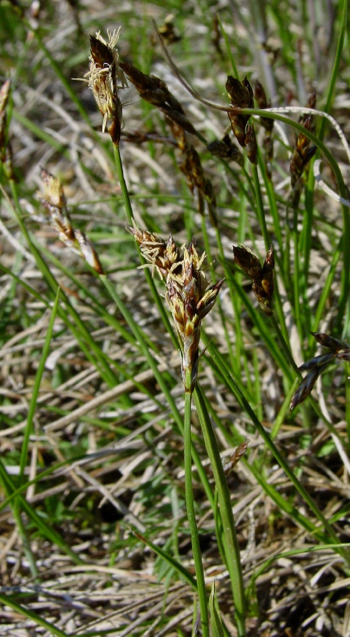 Ausläufern wachsend Blütenstand 2 - 3 cm lang, mit 4 - 6 Ährchen, Blätter 1 - 3 mm breit, Schläuche 1 - 1,5 mm breit > 2