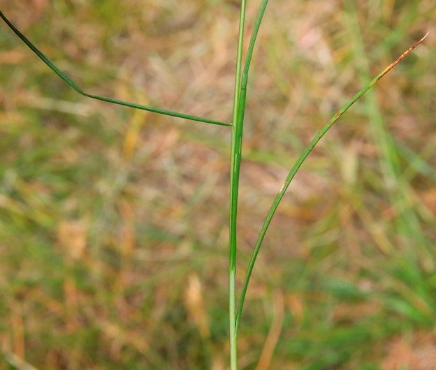 Blätter 1 - 1,5 mm breit, steif, meist rinnig oder eingerollt, selten länger als der Stängel, zur Blütezeit aufrecht, später überhängend