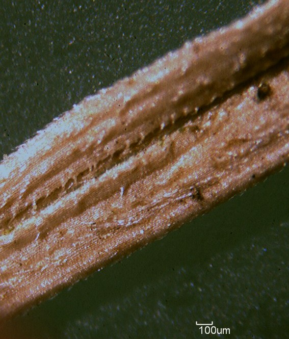 Spelzen dunkel purpurn mit hellem Mittelstreif und weißem Hautrand, kürzer wie die Schläuche