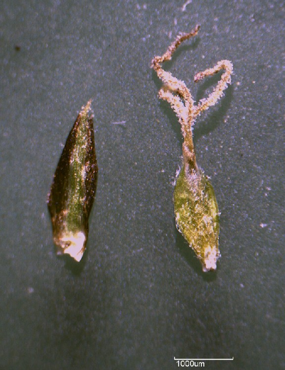 Ährchen weiter auseinander und die Schläuche sind dichter behaart.