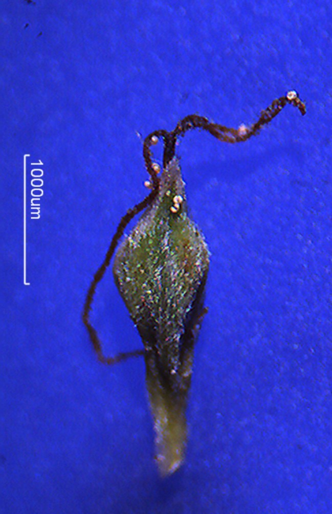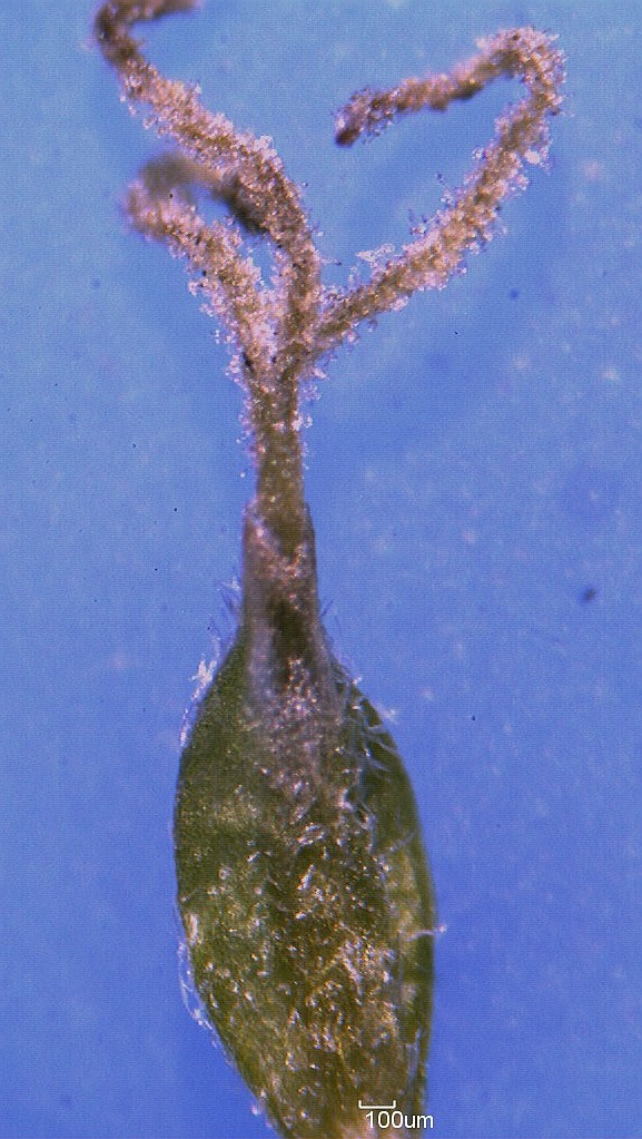 Schläuche dicht kurzhaarig, dickbauchig, 3 Narben