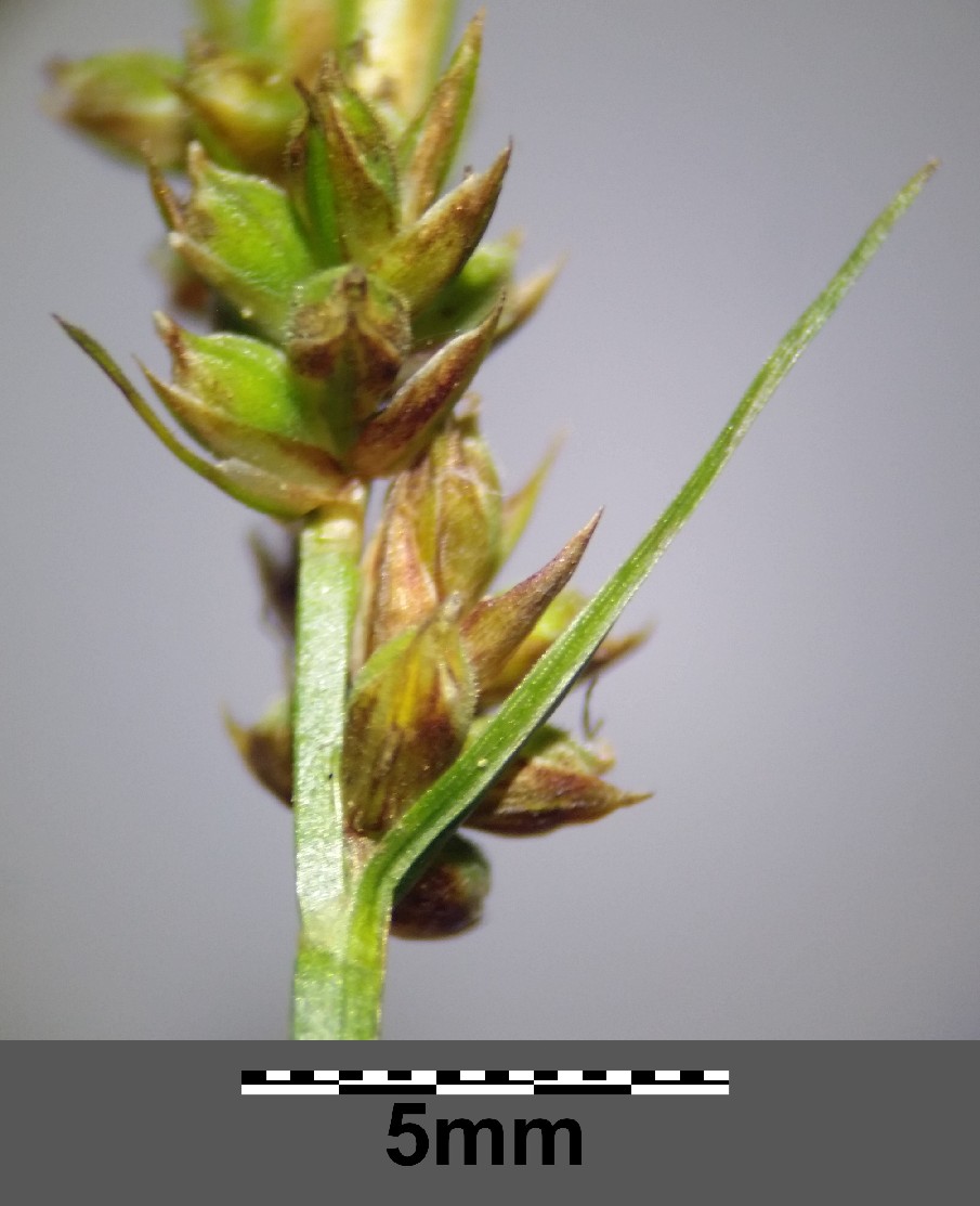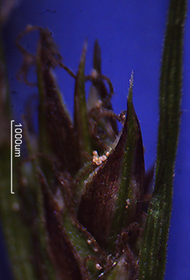 Spelzen schwarzbraun, oft stachelspitzig, ausgerandet, kürzer wie die Schläuche,