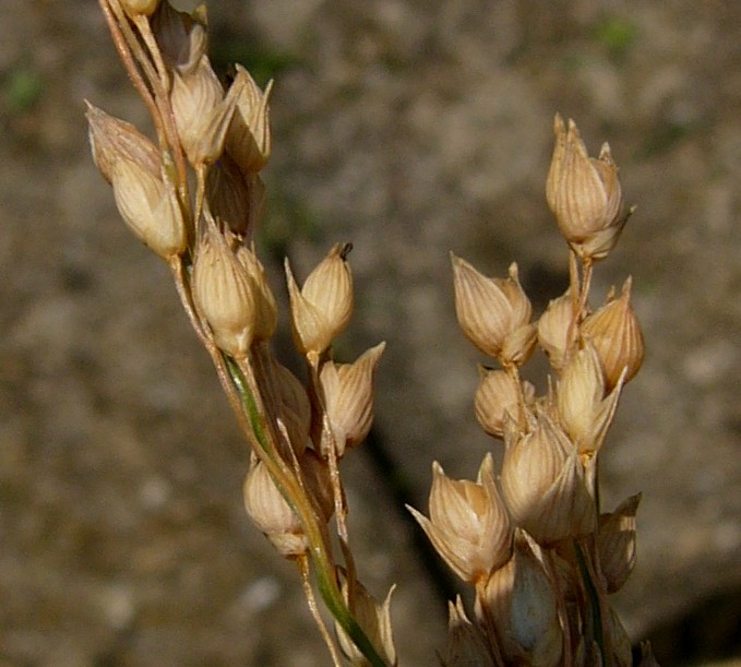 Rispen überhängend Blütenstand breit und dicht Ährchen zur Reife in der Spelze verbleibend Frucht hellgelb oder rötlich, zur Reifezeit nicht ausfallend