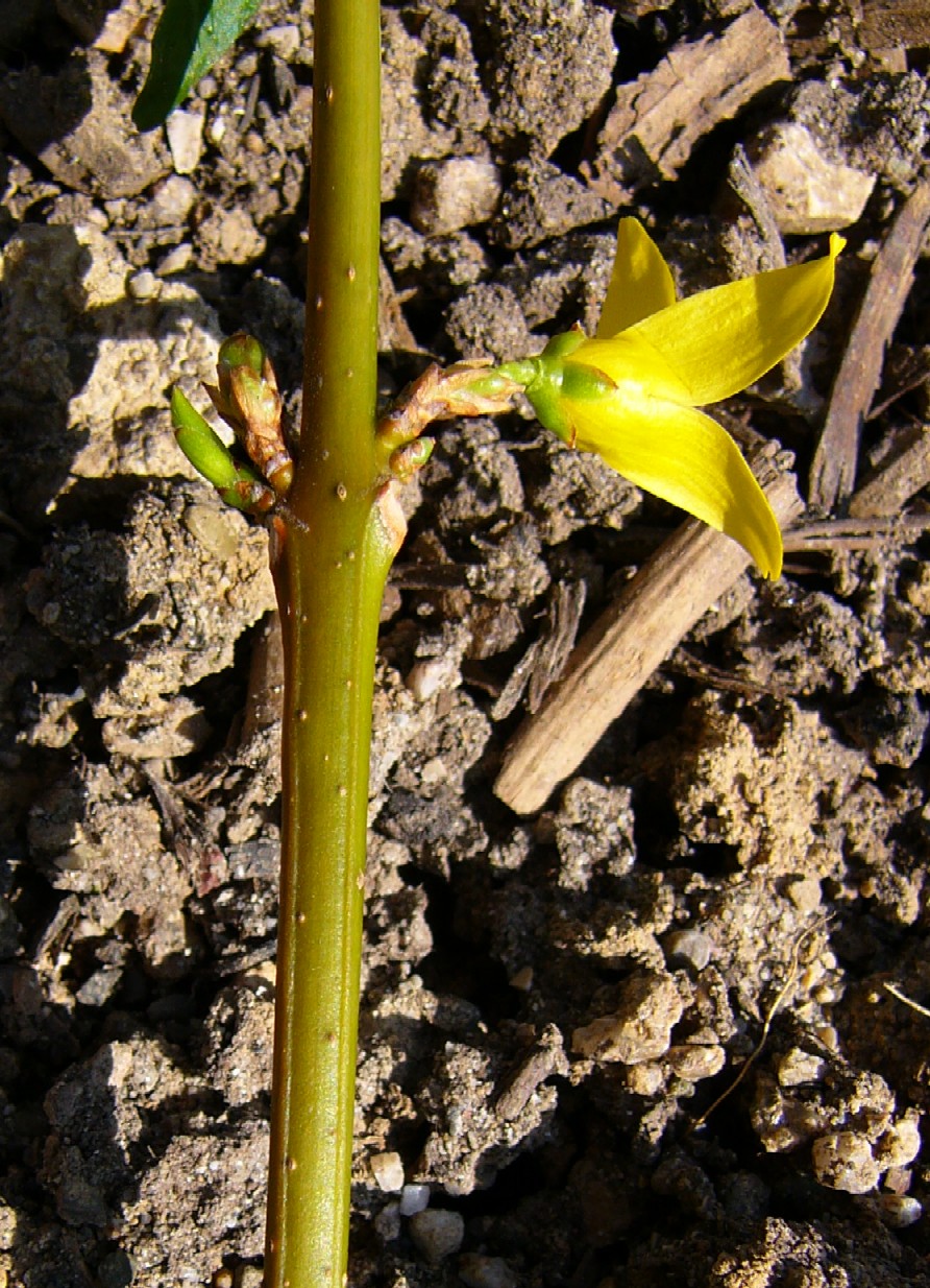 Blüten sattgelb, junge Zweige stark 4- kantig, rundum olivgrün, mit gekammertem Mark selten gepflanzt > 4 |