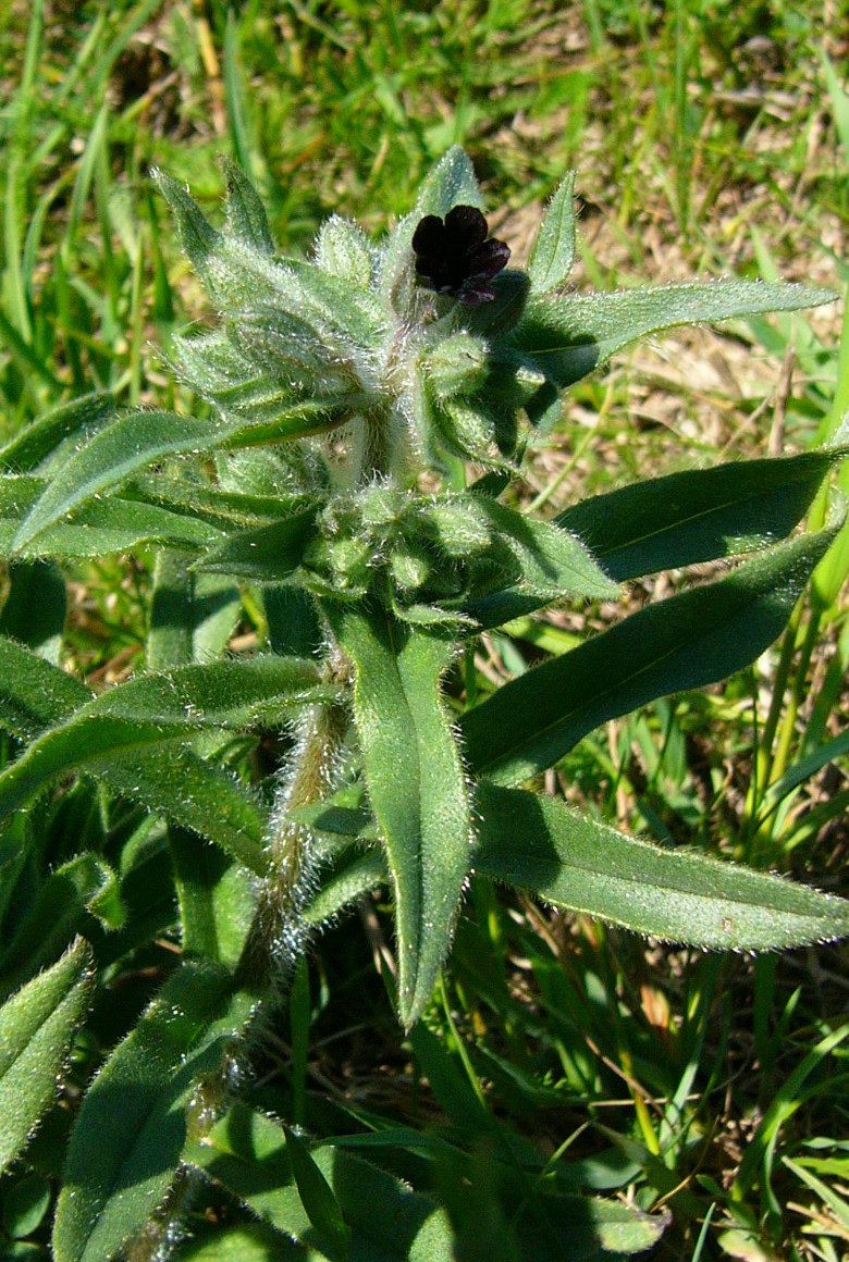 Kronzipfeln Blätter eilanzettlich, 1 - 2 cm breit, ganzrandig > Nonea (Mönchskraut)