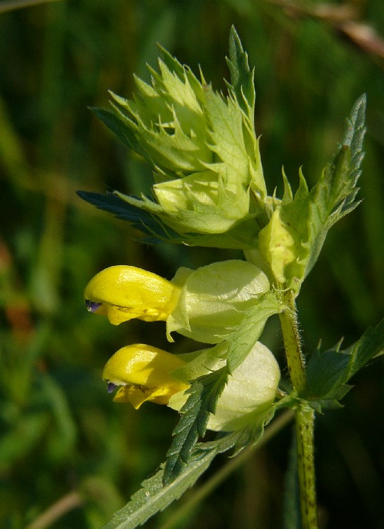 Kelch +/- aufgeblasen Blüten im Schlund mit violettem Zahn > Rhinantus (Klappertopf)