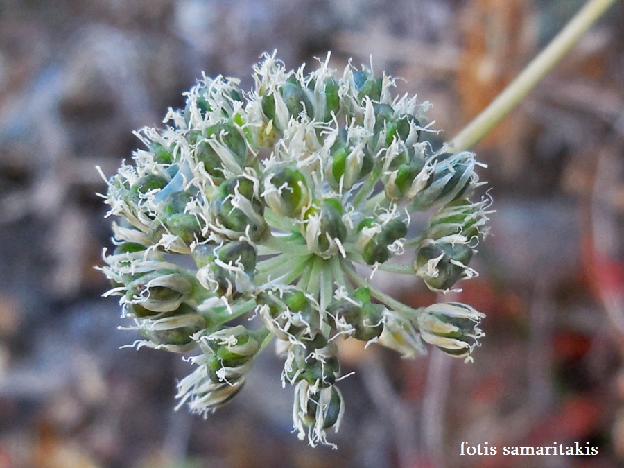 Allium - Blütenstand ohne Bulbillen, Blüten weiß oder grünlich, in kugeligen vielblütigen Köpfchen, Blütenstiele schlank, nicht aufgeblasen, Blätter 1 - 5 mm breit, Staubblätter länger als die Perigonblätter, innere Staubblätter mit je 2 pfriemlichen Fortsätzen, die aus der Blüte ragen