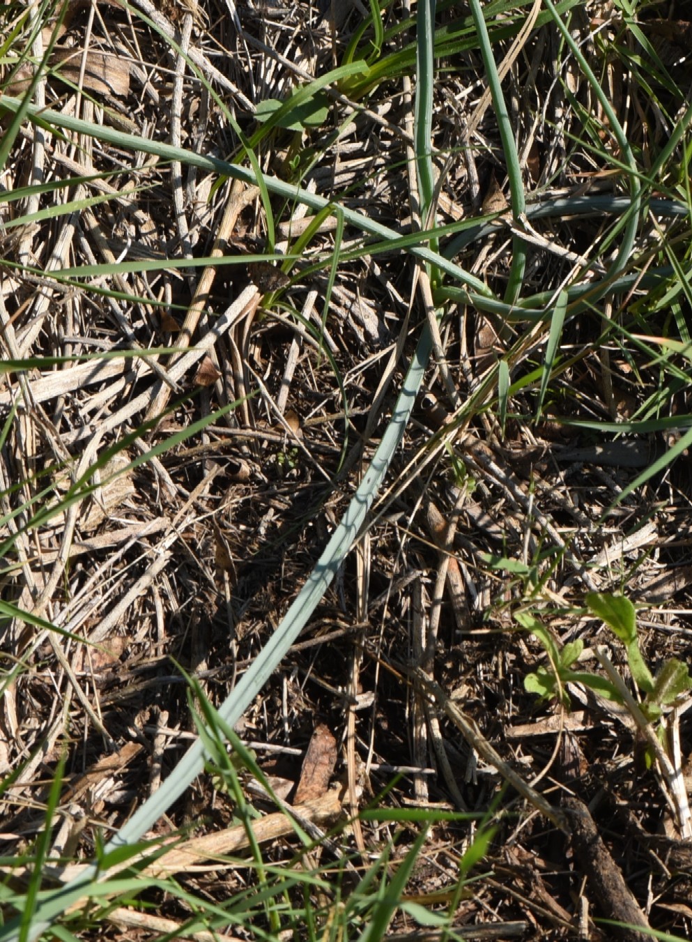Blätter im vorderen Teil auf der Oberseite rinnig Zwiebel eiförmig, 1 - 2 cm im Durchmesser, äußere Tunica weiß, papierartig, mit parallelen Fasern, Nebenzwiebeln vorhanden