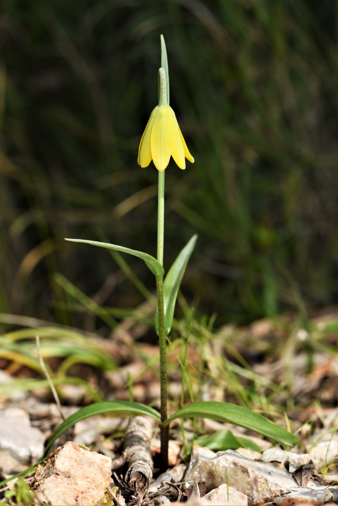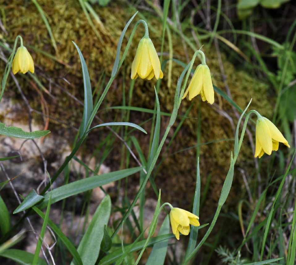 Blüten gelb, ohne Schachbrettmuster, kegelförmig oder schmal glockig, Perigonblätter +/- gleich, 12 - 20 mm lang, 5 - 8 mm breit, eilanzettlich