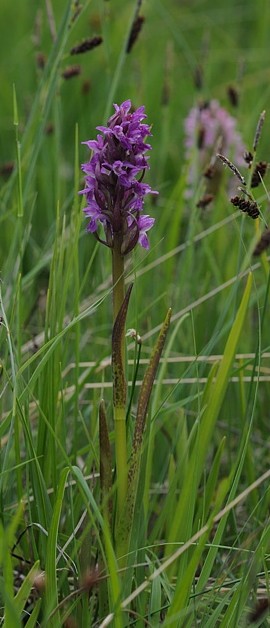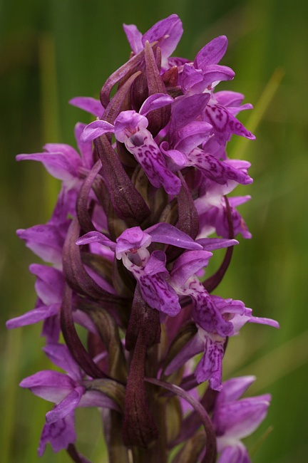 Unterarten und Variationen von Dactylorhiza incarnata mit rosa oder rotvioletten Blüten und gefleckten Blättern
