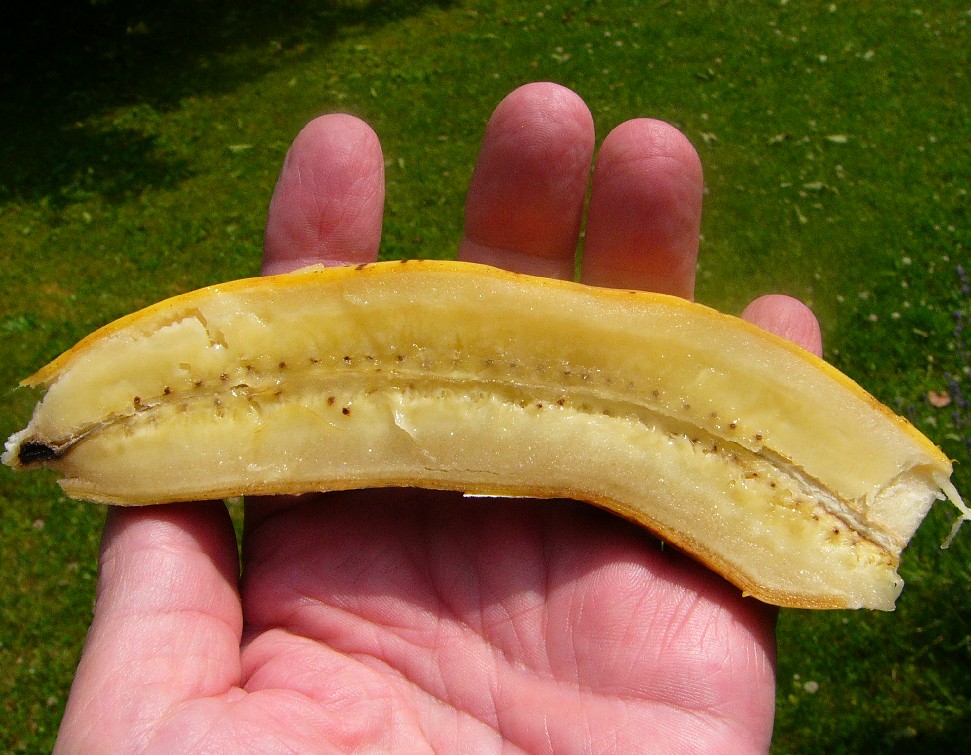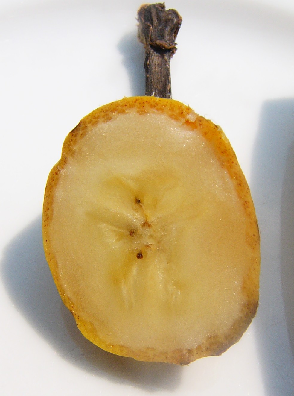 Fruchtschale nicht essbar, Fruchtfleisch gelblich, wohlschmeckend