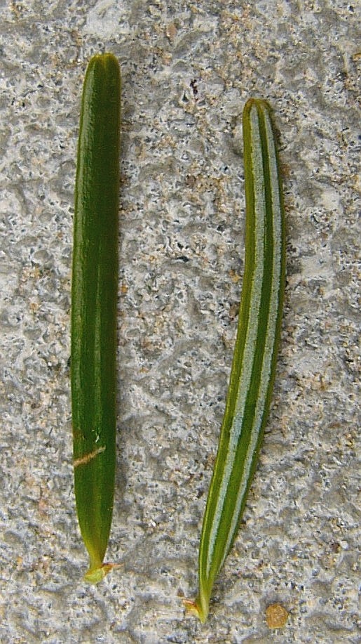 Spaltöffungsbändern, daher beiderseits bläulich > Nadeln oberseits bläulich