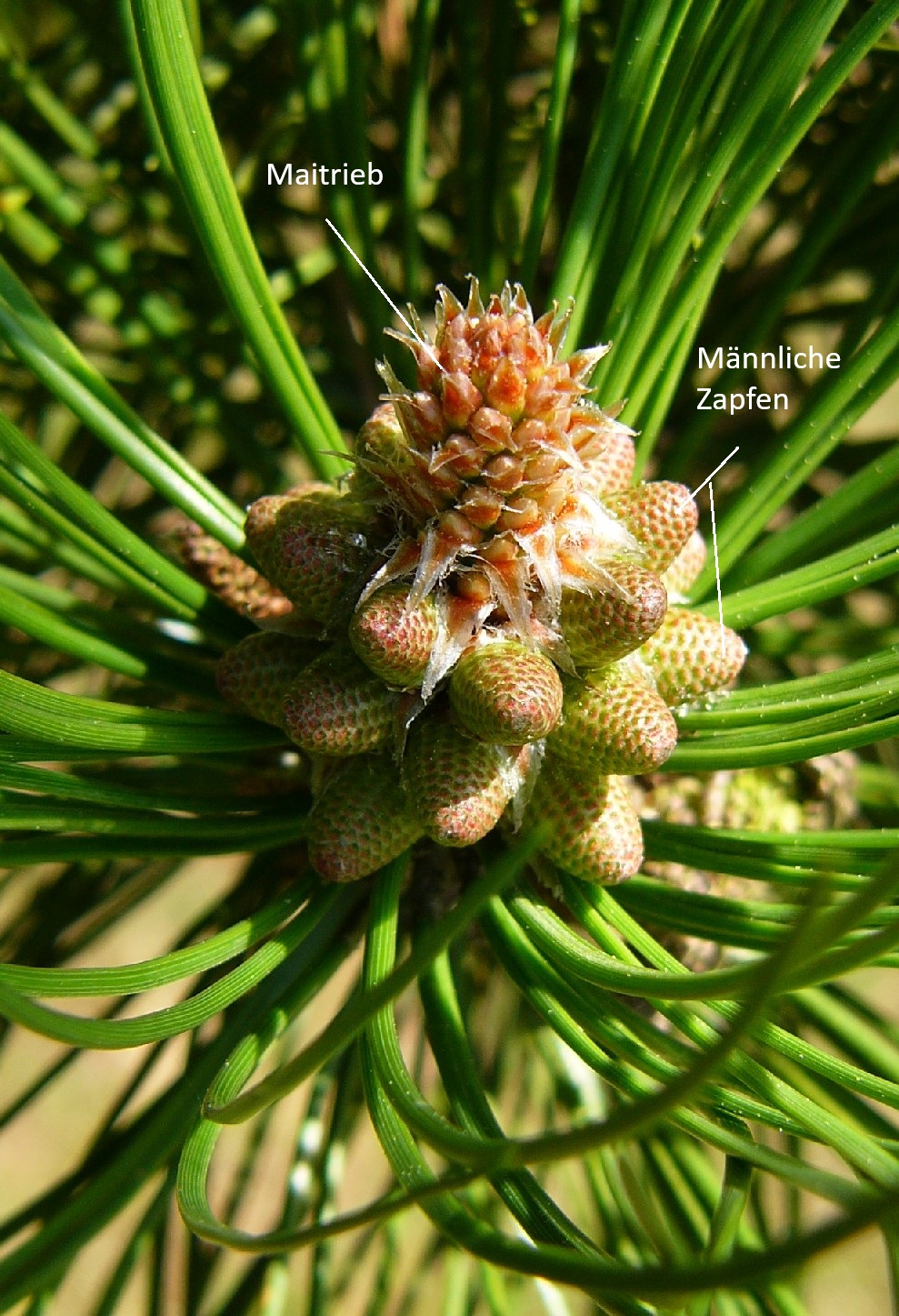 Pinus - Nadeln zu 2, Mehrzahl der Nadeln mehr als 7 cm lang, junge Zapfen dornig, Nadeln grün oder dunkelgrün