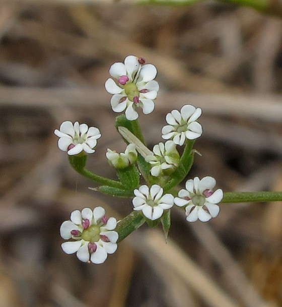 Döldchen mit 5 ungleichen Hüllchenblättern: 3 fädliche und 2 spatelförmige