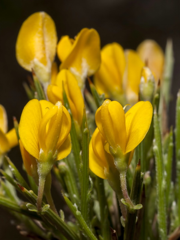 Blüten gelb, Fahne 8 - 12 mm lang, 7 - 8 mm breit, eiförmig, ca. so lang wie Flügel und Schiffchen, Schiffchen stumpf, behaart