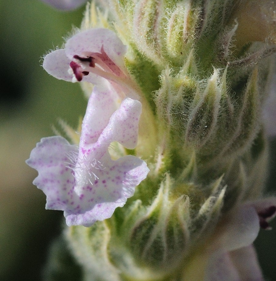seitliche Lappen der Lippe gefaltet Stängel abstehend behaart und +/- drüsig, Haare 0,75 - 1 mm lang Mittlere Stängelblätter 20 - 35 mm lang, 10 - 18 mm breit, runzlig, gezähnt, vorne +/- spitz, am Grund herzförmig seidenhaarig bis filzig