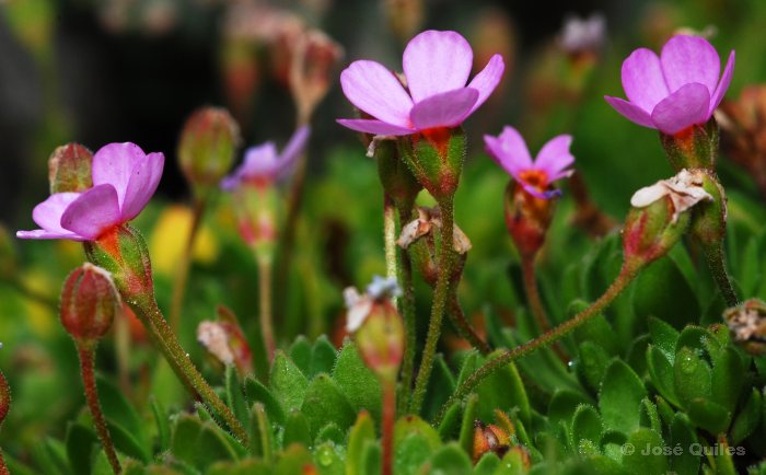 3 Blüten immer rosa, Blätter 3 - 5 mm lang, mit wenigarmigen Sternhaaren