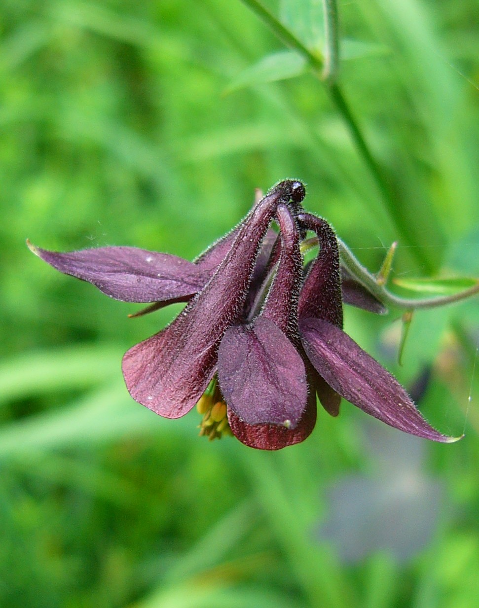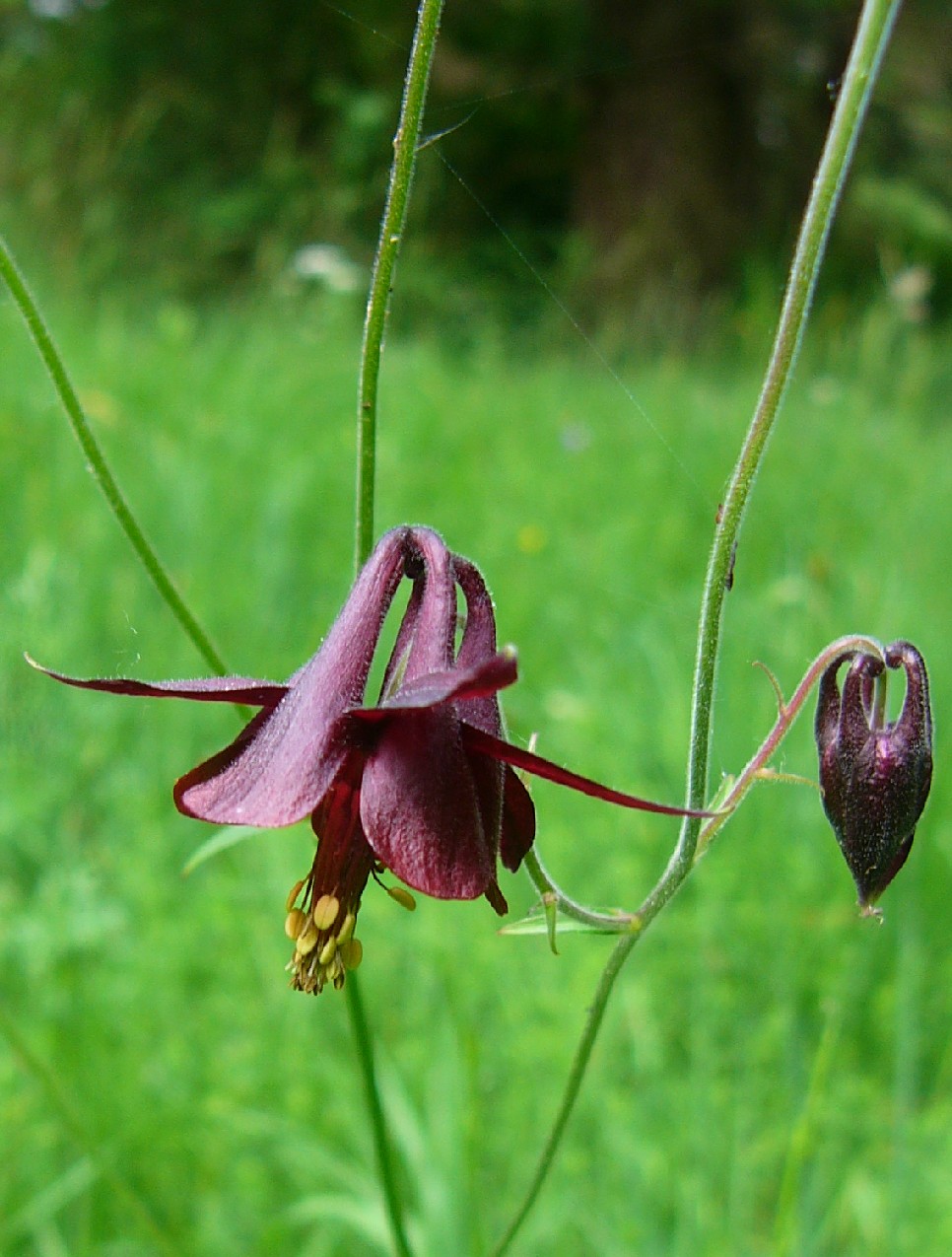 2 Blätter unterseits kahl, Blüten braunviolett, Kelchblätter 15 - 25 mm lang, Sporn 10 - 15 mm lang