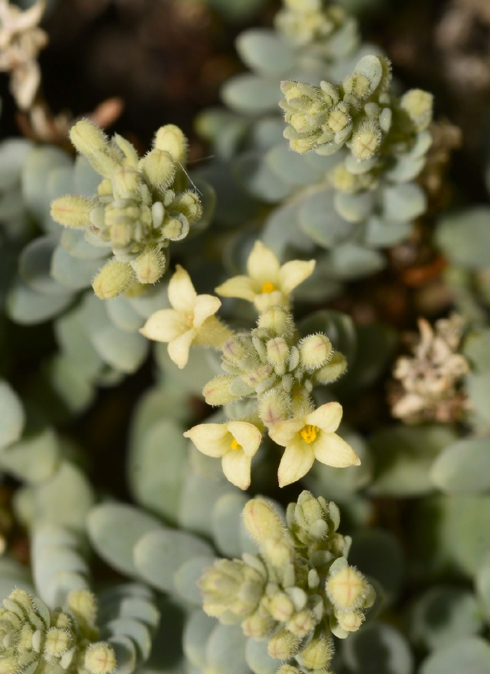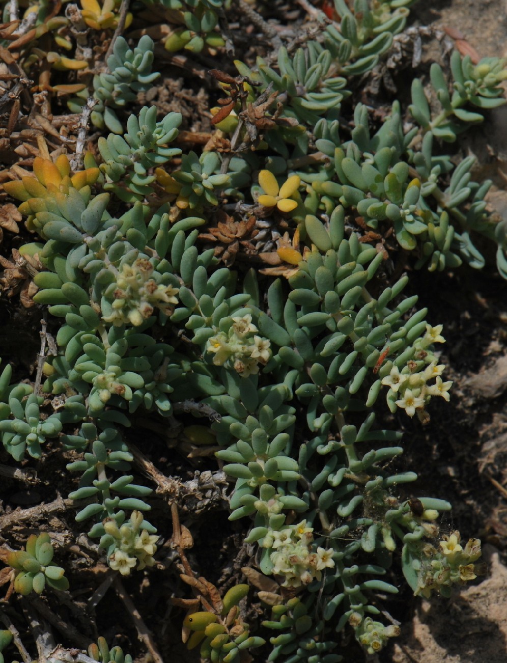 kriechend, Blüten einzeln oder zu mehreren in den Achseln der Blätter Blätter 5 - 6 mm lang, +/ umgerollt, dadurch fleischig wirkend > 2