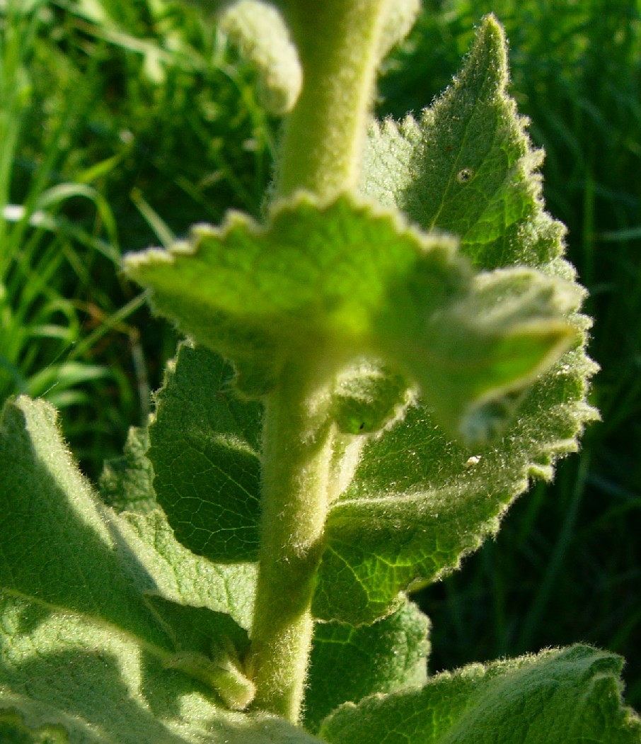 Griechenland Blüten einzeln in den Achseln eines Tragblattes Staubblätter gelbwollig > Verbascum ovalifolium