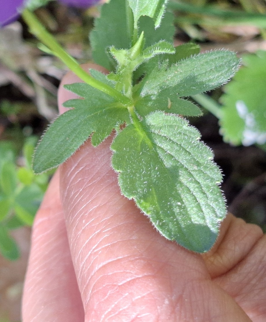 Blätter kurz gestielt, eiförmig, gekerbt, behaart, vorne stumpf