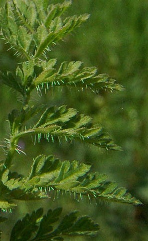 Blätter 3- 4- fach fiederschnittig, Blattfiedern eiförmig
