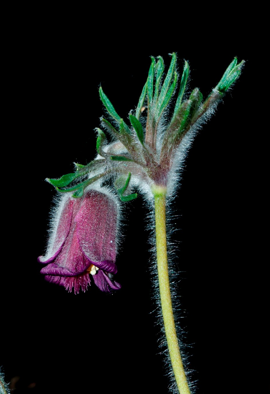 Blüten außen rotviolett- oder schwarzviolett, mit kurzen Haaren