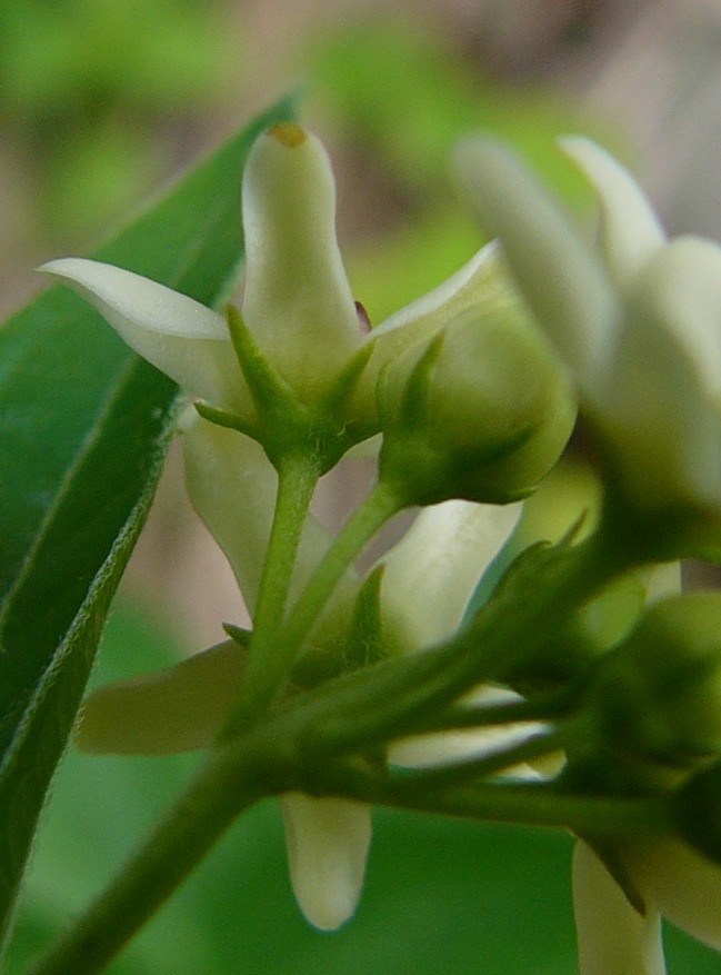 Blüten stehen in kleinen Trauben in den Blattachseln