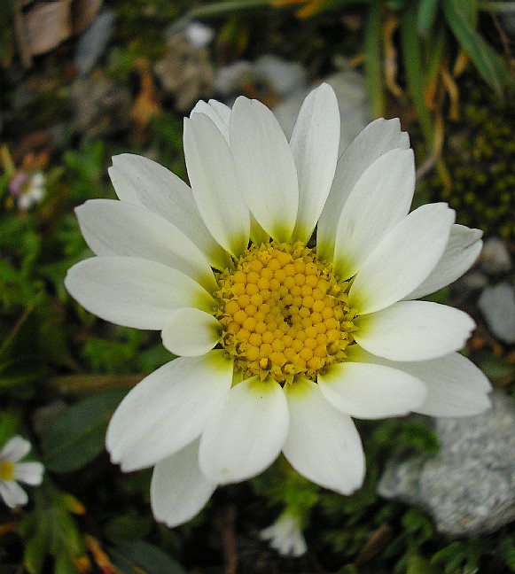 Pflanze 5 - 15 cm groß, immer einköpfig Zungenblüten schmal, mehrreihig oft etwas rosa