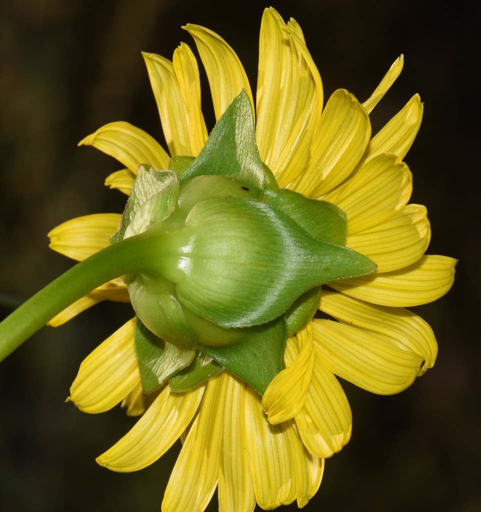 Zungenblüten 3 - 4 cm lang, Röhrenblüten gelb, Staubblätter braun
