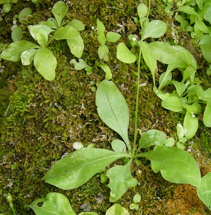 Stängel locker beblättert, Blätter löffelförmig