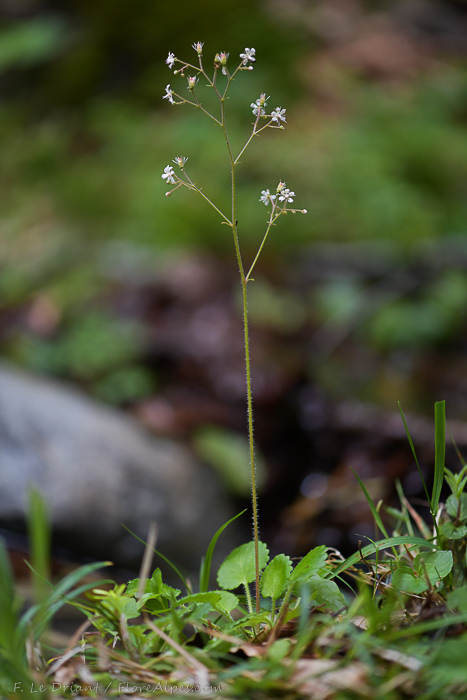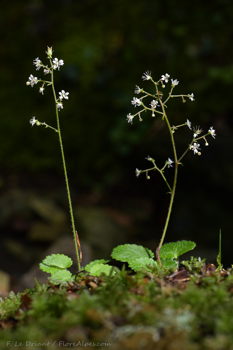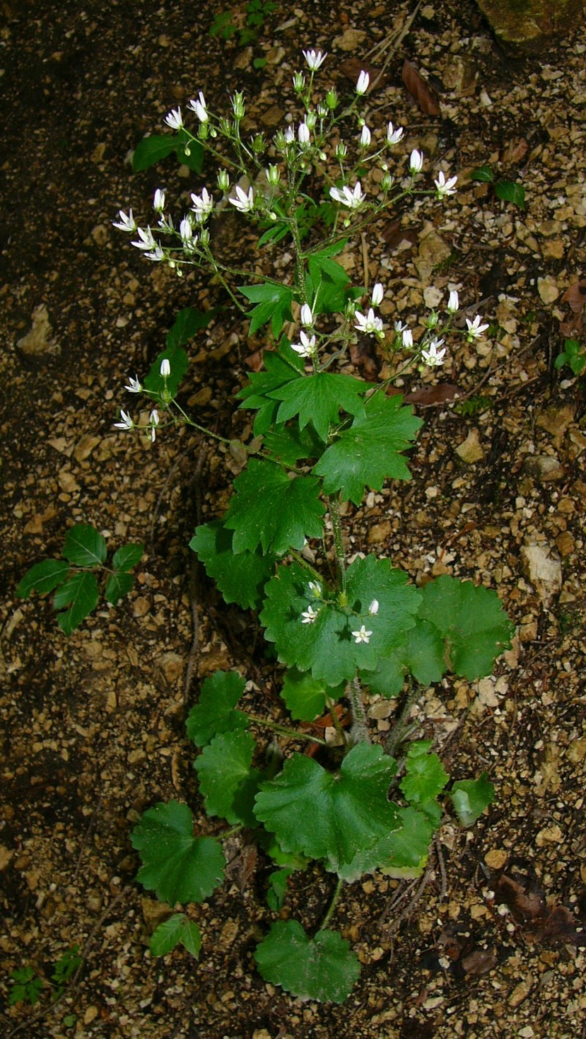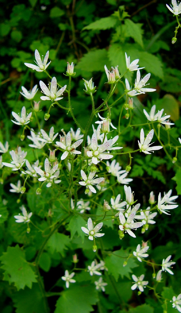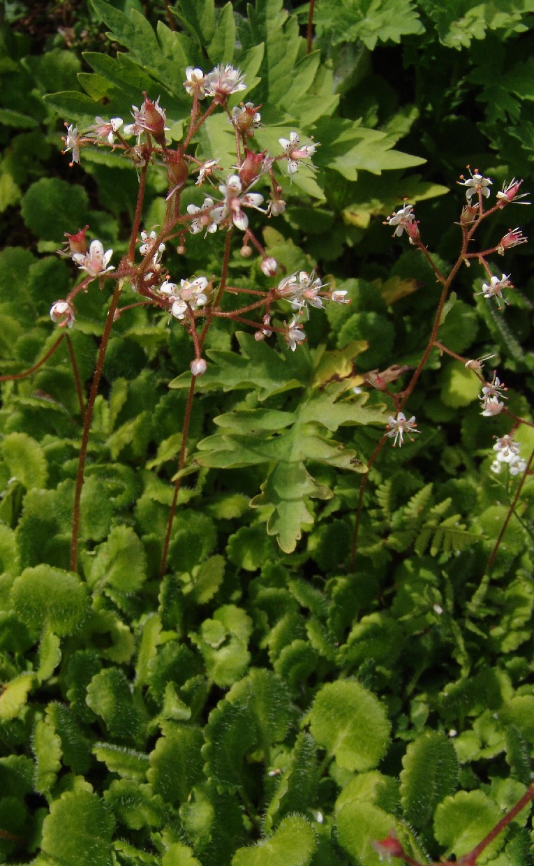 Steinbrech - Blüten weiß, mit gelben und roten Punkten, Blätter weich, rundlich, nicht kalkausscheidend