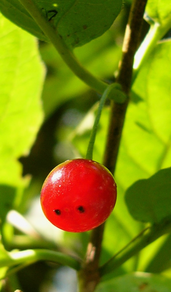 Die beiden Früchte sind vollständig miteinander verschmolzen, Doppelbeeren kirschrot, glänzend
