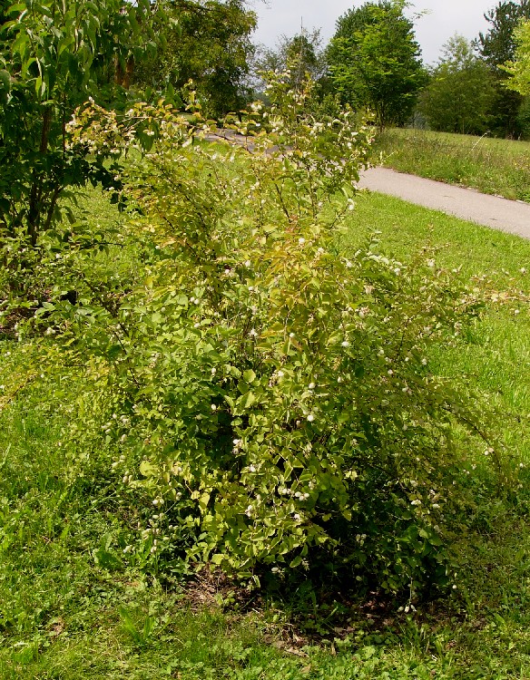 VII - VIII, Straßenbegleitstrauch, Gärten Bastard Symphoricarpos albus x Symphoricarpos microphyllus x Symphoricarpos orbiculatus Synonyme: English