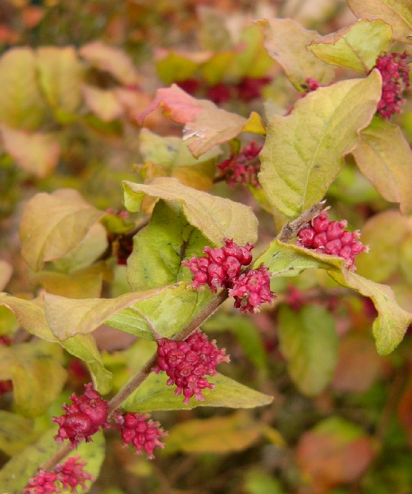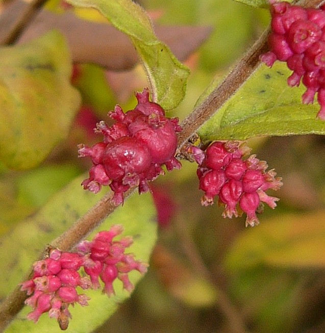 'Amethyst': Früchte groß, lilarosa bis purpurviolett 'Erect': Früchte magentarot, dicht beisammen
