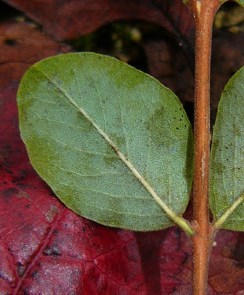 Blätter gegenständig, grasgrün, rundlich eiförmig, Blätter ca. 2 cm lang, am Grund keilig, unterseits hellgrün- filzig